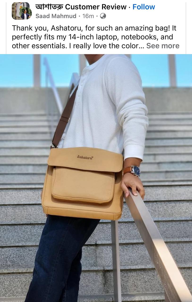 Thank you, Ashatoru, for such an amazing bag! It perfectly fits my 14-inch laptop, notebooks, and other essentials. I really love the color and the build quality!